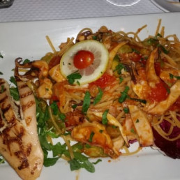 For a lighter option, try the refreshing Insalata Cesar featuring Mesclun greens, goat cheese cromesquis, cherry tomatoes marinated in basil and olive oil, melon, Parma ham, walnuts, and honey. This salad is a delightful mix of fresh ingredients that will satisfy your taste buds.